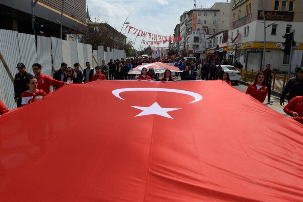 Tüm yurtta 19 Mayıs Atatürk’ü Anma, Gençlik ve Spor Bayramı coşkuyla kutlanıyor. Erzurum’da da çelenk sunumuyla başlayan törenler, Tarihi Ulu Camii önünden Havuzbaşı Kent Meydanına kadar süren kortej yürüyüşü ile devam etti. Yürüyüşe öğrenciler tarafından taşınan 240 metre uzunluğundaki Türk Bayrağı damgasını vurdu.